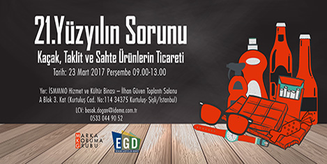 İstanbul Serbest Muhasebeci Mali Müşavirleri Odası (İSMMMO) Hizmet ve Kültür Binası’nda 23 Mart 2017 tarihinde düzenlenecek olan çalıştayın açılışında; Marka Koruma Grubu Sözcüsü Dr. Ali Ercan Özgür, Ekonomi Gazetecileri Derneği Başkanı Celal Toprak, İSMMMO Başkanı Yücel Akdemir ve Türk Girişim ve İş Dünyası Konfederasyonu (TÜRKONFED) Yönetim Kurulu Başkanı Tarkan Kadıoğlu konuşacak.