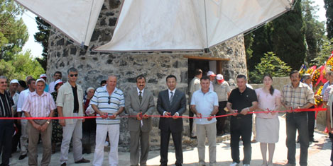 Yapılan açılışın ardından Vali Aksoy ve beraberindekiler taş gövdeli yel değirmenin içini gezerek, değirmen hakkında bilgiler aldı.