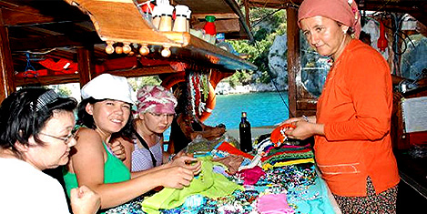 Kışın üretilen ürünler yaklaşık 40 tezgahta satışa sunuluyor. Oyalı yazmalar 10- 30 lira arasında, takılar 5 liradan 100 liraya kadar satılıyor. Tezgah başında satış olmadığı zaman kadınlar el işi yapıyor. Bazıları bebekleriyle geliyor. Öğrenci olanlar ise hem kitap okuyor, hem satış yapıp okul harçlıklarını çıkarıyor. İş yerlerinde dondurma yapıp satan kadınlar da var. Bazı kadınlar ise yat kaptanlığı yapıyor.