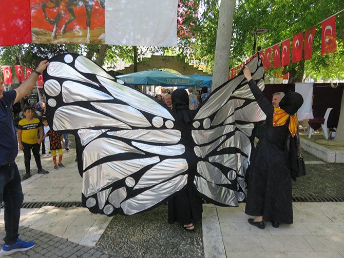 MUT / MERSİN - Mersin’in Mut ilçesinde ilk kez düzenlenen “Mutlu Kelebekler Festivali”nde rüzgar esince kelebekler saklandı ve etkinliğe katılanlar MEÜ Fen Fakültesi Öğretim Üyesi Doç. Dr. Yusuf Hüseyinoğlu’nun Kelebek koleksiyonunu izlemek zorunda kaldılar. Ayrıca Mut Çıtlık Doğa Gezginleri (Mut ÇIDOG) yöneticisi Mehmet Gürbüz ile gazeteci ve Mut Doğa Sporları ve Fotoğraf Derneği (MUDOF) kurucusu Ahmet Güler’in Mut’ta çektiği fotoğraflardan oluşan Kelebek Fotoğraf Sergisi izlendi.