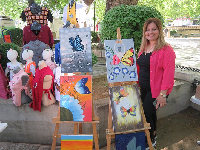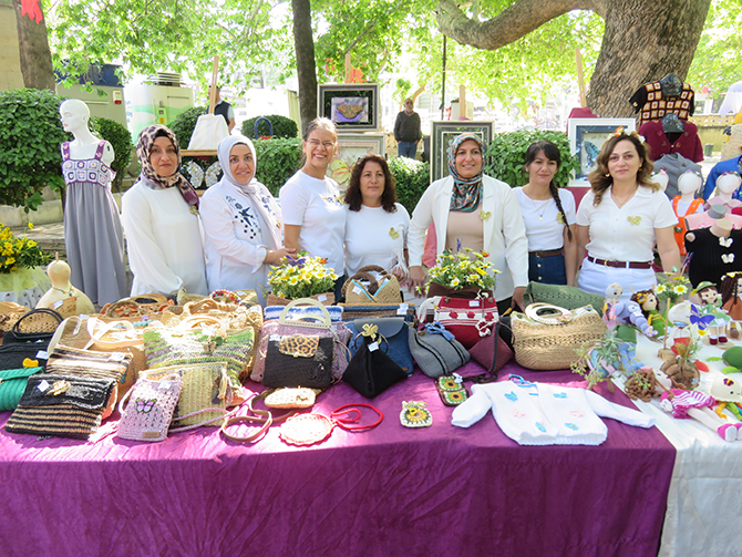 Mut Engellilere Umut Derneği Başkanı Emine Ünal Çopur başkanlığında engelli kadınların ürettiği kelebek desenli ürünler izleyicilerin beğenisini topladı.