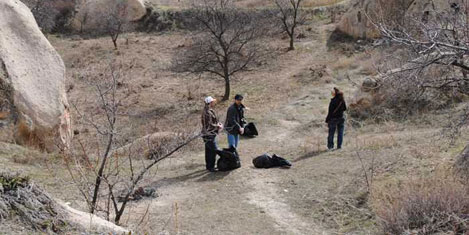 NEVŞEHİR - Türkiye'nin önemli kültür ve doğa turizmi bölgelerinden Kapadokya'nın merkezi Nevşehir'in merkeze bağlı turistik Göreme beldesinde bulunan Kılıçlar Vadisi çöplerden temizlendi.