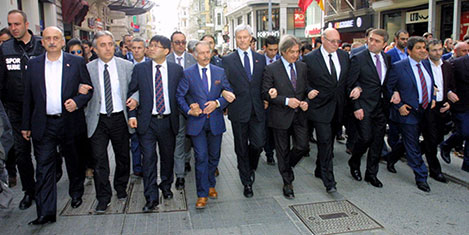 İSTANBUL- İstanbul’da katılan 19 farklı ülkenin konsolosu, teröre lanet için Beyoğlu Belediye Başkanı Ahmet Misbah Demircan başkanlığında İstiklal Caddesi’nde yürüdü ve geçtiğimiz Cumartesi günü canlı bomba saldırısının meydana geldiği alana karanfiller bıraktı. Daha sonra grup, İstiklal Caddesi’nde yürüyerek Belçika Başkonsolosluğu önüne geldi. İstanbul polisi yürüyüş güzergahı boyunca geniş güvenlik önlemleri aldı.