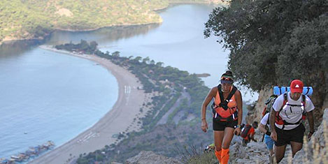 FETHİYE-Bu yıl 4.'sü düzenlenen uluslararası Likya yolu ultra maratonu Fethiye'den başladı. Toplam 509 kilometre uzunluğundaki tarihi Likya yolunun 240 kilometrelik bölümünü kapsayan maratona 34'ü yabancı 150 yarışmacı katılıyor. Likya yolu ultra maratonunun startı Ölüdeniz 'de Likya yolu girişinden verilirken, ilk gün 36,5 kilometrelik Ölüdeniz Sidyma Antik Kenti'ne kadar süren maratona 95 yarışmacı iştirak etti. Start verildiği anda çığlıklar atan yarışmacılar Ölüdeniz 'in muhteşem manzarasında yol aldılar. 6 gün devam edecek çeşitli etapların bulunduğu maratonda 60'a yakın kadın maceraperest yer alıyor. Amerika, Almanya, Hollanda, İngiltere, Rusya, Romanya ve değişik ülkelerden 34 yarışmacının da katıldığı maratonda son teknolojik takip cihazları kullanılıp yarışmacıların yolunu şaşırıp kaybolmalarının önlenmesi için takibi de yapılıyor.