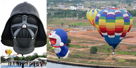 PUTRAJAYA -  Malezya'da düzenlenen balon festivali renkli görüntülere sahne oldu. Kuala Lumpur'un dış kesimlerindeki Putrajaya hava balon festivalinin üçüncüsüne ev sahipliği yaptı. 13 ülkeden 27 balonun yer aldığı festivalde balonlar her gün iki defa gökyüzüne havalanıyor. Gökyüzü meraklıları ile yerden 300 metre havalanan balonlar, 15 dakika boyunca havada kalıyor. Dört gün sürecek festivale Yıldız Savaşlarında kullanılan siyah maske dikkat çekiyor. Malezya Hava Sporculuk Federasyonu ve AKA Ballon tarafından düzenlenen şenliğe her sene yaklaşık 300 bin ziyaretçi geliyor.