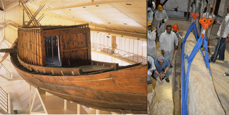 KAHİRE- 4500 yıl önce Eski Mısır Kralı Khufu’yu ölümünden sonraki yaşama götürmesi için kral ile birlikte gömülen güneş teknesinin üzerir açılarak ortaya çıkarıldı. Üzerindeki taş plakalar çıkarılan güneş teknesi 1987 yılında elektromanyetik radar araştırmaları sonucu keşfedildi.