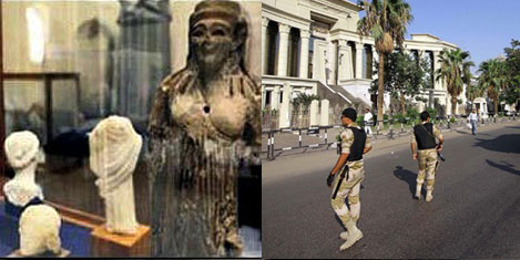 Mısır'daki çatışmalar yağmacılar Kahire'ye 300 kilometre uzaklıktaki Minya kentinin "hazinesi" Malawi Müzesi'ni talan etti.