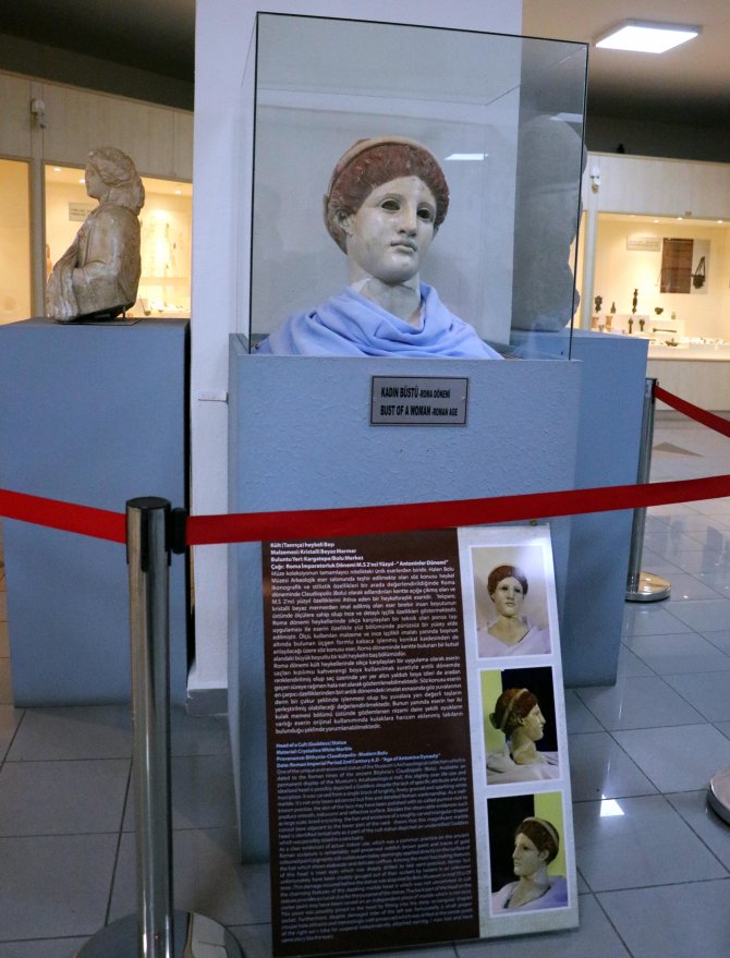BOLU - Bolu kent merkezinde bulunan Akpınar Mahallesi'nde 1971 yılında Kız Enstitüsü inşaatı için yapılan kazıda, mermer kadın büstü bulundu. Roma dönemine ait olduğu belirlenen kadın büstü, Bolu Müze Müdürlüğü'ne ait müzede sergilenmeye başladı. Bolu Ticaret ve Sanayi Odası kentte tarih turizminin ön plana çıkarılmasını sağlamak amacıyla arkeologlardan oluşan bir heyet oluşturdu. Heyet, Bolu Kent Müzesi'nde bulunan heykeller üzerinde inceleme yaptı. Müzede 'Roma Dönemi'ne ait Kadın Büstü' olarak 50 yıldır sergilenen heykelin Artemis'e ait olabileceğinin düşünülmesi üzerine çalışma başlatıldı. Çalışmanın sonucunda uzmanlar tarafından, heykelin Yunan mitolojisi tanrıçalarından 'Artemis'e ait olduğu belirlendi. Yaklaşık 2 bin yıl öncesine ait olduğu düşünülen heykelin saç kısımlarının boyalı olması ve bu zamana kadar tahrip olmaması nedeniyle, dönemin kamu binasında sergilendiği ve dünyada eşi benzerinin bulunmadığı belirtildi.