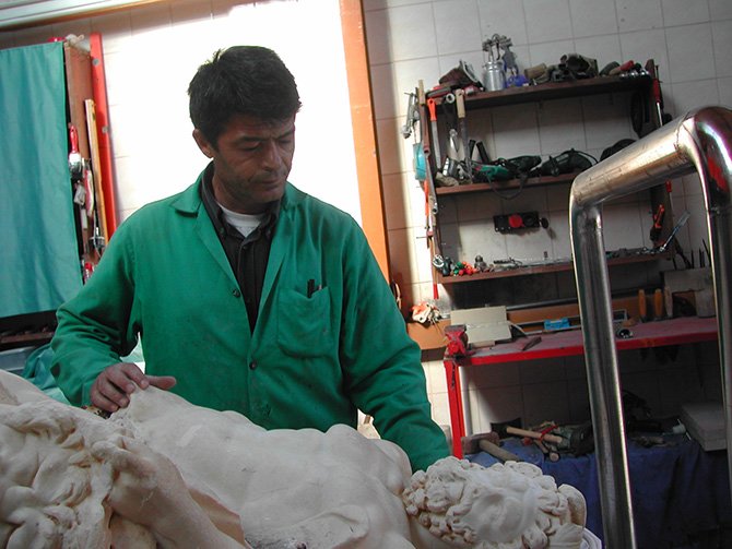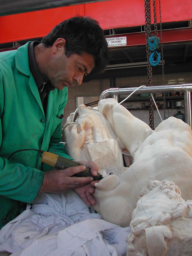 SİDE / ANTALYA- Restoratör Beyzade Yaycıoğlu, tarihi eserleri koruma. güçlendirme ve restorasyonunda yetişmesinde emeği geçen ve 8 yıl hocası önce Side'de hayatını kaybeden hocası Alman heykeltıraş Dietmar Friese’nin izinden gidiyor.