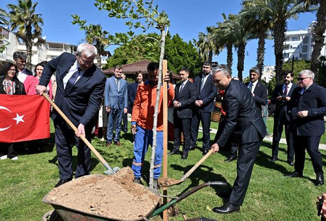MURATPAŞA/ANTALYA - Antalya’nın merkez Muratpaşa Belediye Başkanı Ümit Uysal, Türkiye turizminin kalbi savaş halinde olan Antalya'nın Rus ve Ukraynalıların savaşmasına karşı birlikte kardeşçe yaşadığı şehir olduğunu söyledi. Muratpaşa Belediye Başkanı Av. Ümit Uysal ve Ukrayna Dışişleri Bakanı Andriy Sibiha, Ukrayna ve Türkiye arasındaki dostluğun simgesi olarak Ukrayna Kültür Parkı’nda birlikte çınar ağacı dikti.