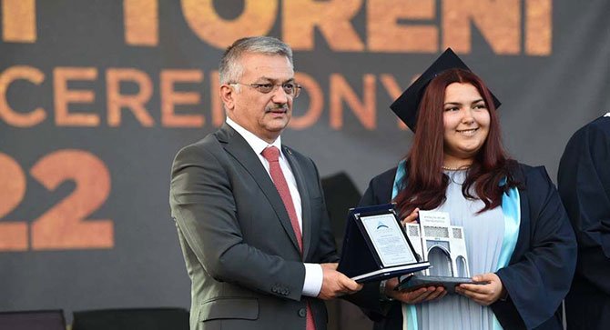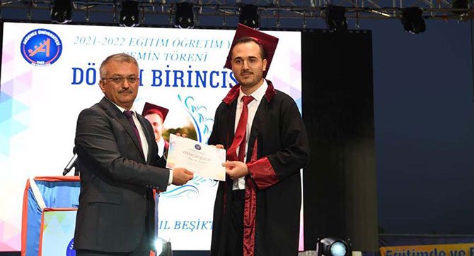 Konuşmasının ardından Vali Ersin Yazıcı Tıp Fakültesi Dönem birincisi Anıl Mahir Beşiktaş'a onur belgesini takdim etti.