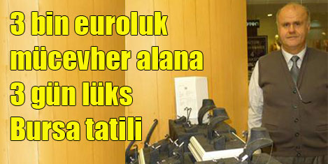 Bursa'daki pırlanta firması Diam-Art'ın Bursa'daki franchising şubesi, 3 bin euroluk mücevher sipariş eden müşterisini şehirde 3 gün misafir etmeyi planlıyor.