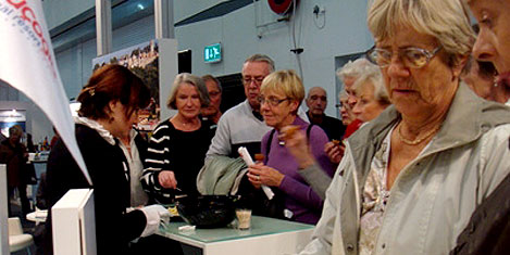 Vali Fatih Şahin, Dalaman Havalimani Müdürü Hamdi Güvenç ve Alo 179 Turizm görevlisi Arzu Akça İsveç'te "Üçüncü Yaş Grubu fuarna katıldılar