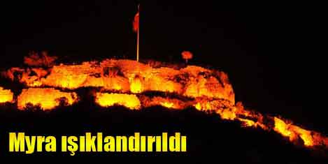 ANTALYA- Demre'deki Myra Antik Kenti'nin üzerinde bulunan tarihi akropol ve çevresindeki kale duvarları, Kültür ve Turizm Bakanlığı'nca ışıklandırıldı.
