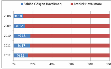 Havayolu ile gelen yabancıların %13’ü Sabiha Gökçen Havalimanını kullanmışlardır.