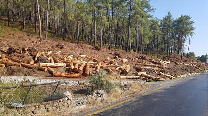 Yazlık saray yapılacak diye yüzbinden fazla ağacın kesildiği Marmaris’in Karacasöğüt köyünde kıyım ve çevre faciası ne yazık ki hala devam ediyor.