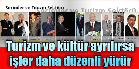 Turizm ve Kültür Bakanlığı’nın ayrılması taraftarıyım ve bu durum turizmi de olumlu yönde etkileyecektir. İki bakanlık ayrıldığı zaman sorunlarımızın daha pratik ve daha hızlı çözüme ulaşacaktır.