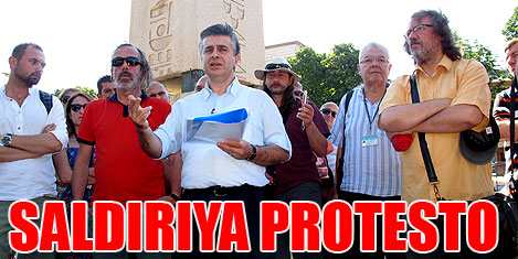 İSTANBUL- Türkiye’nin tüm profesyonel turist rehberlerini temsil eden Turist Rehberleri Birliği-TUREB üyesi yaklaşık 250 rehber Sultanahmet Camii’nde görev yaparken saldırıya uğrayan arkadaşları için tarihi Dikilitaş önünde protesto toplantısı yaptı. TUREB Başkanı Zeki Apalı "Kültür ve Turizm Bakanlığı tarafından verilen resmi kokart ile görev yapan ve Türkiye'deki TUREB bünyesindeki 13 odaya bağlı profesyonel turist rehberleri kamu görevlileridir. Resmi görevli oldukları için resmi makamlar tarafından korunmalıdı" dedi.
