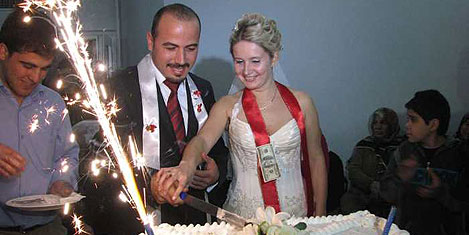 Beyaz Rus vatandaşı İnna Aleksandr ile Türk genci Ahmet Öztürk, Ramazan Bayramı'nda Beyaz Rusya'da, Kurban Bayramı'nda Türkiye'de çifte düğün yaptılar.
