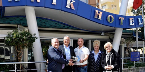 ALANYA- ALTSO Başkanı Mehmet Şahin, Dünyanın en önemli Turizm Şirketlerinden Alman TUI’nin dünya çapında çalıştığı 5 bin 600 otelin arasında düzenlediği memnuniyet anketinde ‘En İyi Otel’ ödülüne layık görülen Anık Otel’i ziyaret etti. Başkan Şahin, bu ödülün maddiyatla ölçülebilecek bir karşılığının olmadığını ve tanıtıma büyük katkı yaptığını vurgulayarak, “Alanya’mız adına gururlandık” dedi. Başkan Şahin, ayrıca otel sahiplerine bir de başarı plaketi takdim etti.