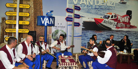 İSTANBUL-Ünlü türkücü Necla Akben ve Hakkarili sanatçı Aydın Aydın, söyledikleri Van yöresine ait türkülerle ziyaretçileri coşturdu. Kültür ve Turizm Bakanı Ertuğrul Günay tarafından bu yıl 15"nci kez kapılarını ziyaretçilere açan Doğu Akdeniz Uluslar arası Turizm ve Seyahat Fuarı (EMITT) devam ediyor.
