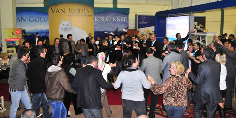 Akben, daha sonra Van Oturma Grubu"ndan, "Edremit Van"a Bakar, İçinden Şamran Akar" isimli türküyü çalmalarını istedi. Grubun çaldığı türküye rahatsızlığına rağmen eşlik eden Akben, "Giderim Van"a doğru, yolum İran"a doğru" uzun havayı da okudu. Daha sonra İstanbul Van Vakfı Başkanı Müjdat Çelik"le birlikte standa gelen Hakkarili sanatçı Aydın Aydın"da Türkçe ve Kürtçe türkülerden oluşan mini bir konser verdi. Vanlı turizmciler ve fuarı gezmeye gelen ziyaretçiler de Aydın"ın söylediği türkülere halay çekerek eşlik etti. Vatandaşların da halaya dahil olmasıyla birlikte Van standı bir anda karnaval yerine döndü.