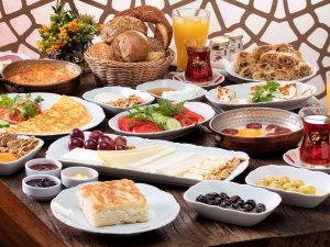 Kahvaltıda mideler kadar gözlerin de bayram etmesi şart… Envai çeşit günlük peynirlerin sunulduğu Saray Kahvaltısında, ‘Eski kaşar, beyaz peynir, örgü peyniri,İzmir tulum, dil peyniri gibi çeşitler yer alıyor.