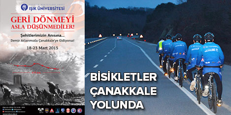 İSTANBUL- Çanakkale şehitleri'nin anmanın 100'cü yılında 130 yıldır kesintisiz eğitim veren Feyziye Mektepleri Vakfı ve Işık Üniversitesi akademisyenleri, öğrencileri, mezunları ve Bisikletliler Derneği üyeleri bisikletle Çanakkale’ye gidiyor. Aralarında bulunan işadamları Fikret Orman, Adnan Polat, Siddik Yarman, Cem Yurtbay mezun oldukları okulun öğrencileriyle birlikte pedal çevirecek.Çanakkale Zaferi'nin 100. yılı anma törenleri yurdun her yerinde kutlanacak. Türkiye'nin bütün illerinden yapılacak olan katılımlarla Çanakkale Zaferi ve şehitleri 100.yılda bir kez daha anılacak.
