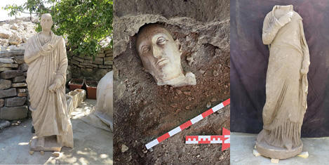 Kazı alanında bulunan porticus içerisindeki başsız bir kadın heykeli ile birlikte ortaya çıkan giyimli iki erkek heykelinin Roma dönemine ait yüksek memuriyetten kişiler olduğu tahmin ediliyor.