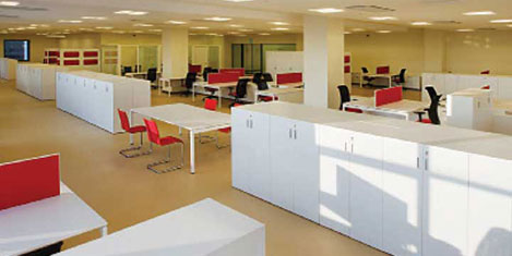 HABOM’u gezdiğimizde çalışma ofislerinin de özenle tasarlandığını görüyoruz. Rengârenk tasarımlar insan odaklı çalışma prensibinin de göstergesi gibi adeta. Projenin tüm ürün grupları Tuna Ofis’in uzmanlığı ile geliştirdiği tasarımsal çözümlerle belirlenmiş. Seçilen ürünlerin tip ve modelleri belirlenmiş, renk düzenlemeleri yapılmış olarak birbirini tamamlayacak, değiştirilebilecek, ilave ya da eksiltme yapılabilecek şekilde, modern, ince ve sert çizgilerle detaysız, fonksiyonel, ergonomik olduğu kadar rengârenk düzenlemeler gerçekleştirilmiş. Açık ofis düzeni kurulan merkezde; ergonomi ve fonksiyondan ödül verilmeden ebat, aksesuar ve renk farklılıkları kullanılarak hiyerarşi yapı planlaması yapılmış. İdari bölüm haricinde tüm masa, dolap, çalışma koltuğu, misafir ve toplantı koltukları aynı model üzerinden türetilmiş.