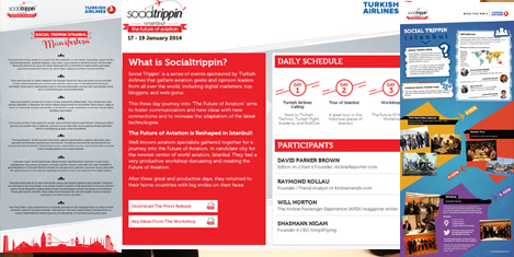 İSTANBUL- Türk Hava Yolları‘nın uluslararası organizasyonu Social Trippin’in manifestosu ve infografiği yayınlandı! Havacılığın nabzını tutan ve dünyadan konularında önde gelen havacılık yazarlarını, araştırmacıları, hava yolu yöneticilerini ve pazarlama uzmanlarını bir araya getiren Social Trippin etkinliğinin İstanbul ayağı, 17 Ocak ve 19 Ocak arasında gerçekleşti. Konusu “Havacılığın Geleceği” olan etkinliğin son gününde yapılan workshop çalışmasına 9 ülkeden 42 profesyonel katılırken havacılık dünyasındaki yeni trendler ve gelecekteki uçuş deneyimi hakkında pek çok fikir ve görüş üretildi. Üretilen görüş ve düşünceler kapsamında oluşturulan manifesto ise bu hafta yayınlandı.
