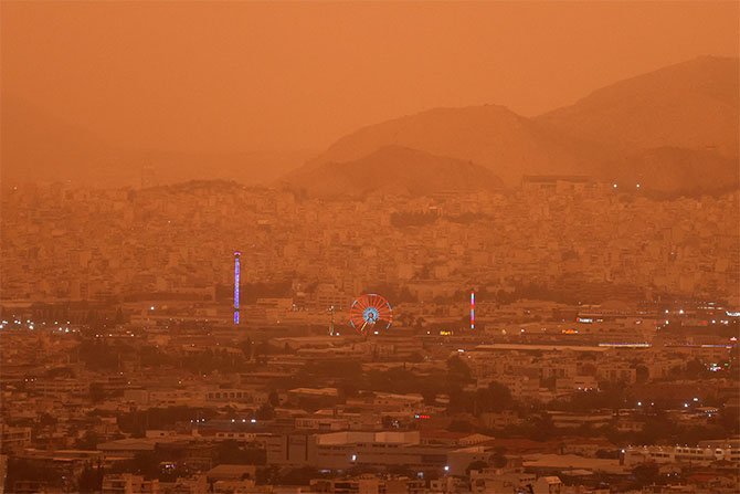 ANKARA - Kuzey Afrika'dan gelen toz bulutlarının etkisiyle Yunanistan'ın başkenti Atina'da gökyüzü turuncu bir renge büründü. Meteoroloji, Marmara ve İç Anadolu Bölgesi'nde beklenen toz taşınımı nedeniyle görüş mesafesinde düşme, hava kalitesinde azalma ve ulaşımda aksamalar gibi olumsuzluklara karşı tedbirli olunması uyarısı yaptı. CNN TÜRK Meteoroloji Danışmanı Prof. Dr. Orhan Şen de 3 gün etkili olacak toz taşımı nedeniyle yaşlılar ve kronik hastalığı olanlar için maske uyarısında bulundu.