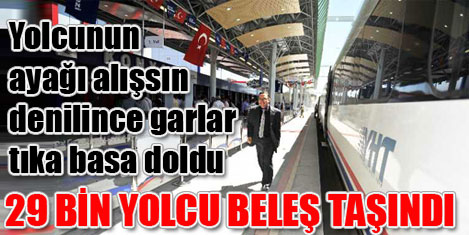 Başbakan Recep Tayyip Erdoğan'ın 23 Ağustos 2011 tarihinde hizmete açtığı Ankara-Konya Yüksek Hızlı Tren hattı vatandaşın akınına uğradı. Erdoğan'ın 'vatandaşın ayağı alışsın' diye verdiği ücretsiz yolculuk hediyesi tren garlarını tıka basa doldurdu. 1 seferde 410 yolcu taşıyabilen YHT'nin Ankara-Konya arasındaki 4 gidiş 4 geliş toplam 8 seferi bütün koltuklar dolu halde yapılıyor. YHT, her gün Mevlana'nın şehri ile Hacı Bayram-ı Veli'nin şehri arasında 3 bin 280 kişiyi getirip götürüyor. 24 Ağustos sabah 7.00'dan bu yana bedava bilete hücum eden Ankara ve Konyalılar bayramı fırsat bilerek 5 Eylül'e kadar treni kapattı. 1 Eylül itibariyle 29 bin 250 yolcuyu taşıyan YHT, bayram tatilinin biteceği 5 Eylül gecesine kadar 42 bin 640 vatandaşa ücretsiz hizmet verecek.