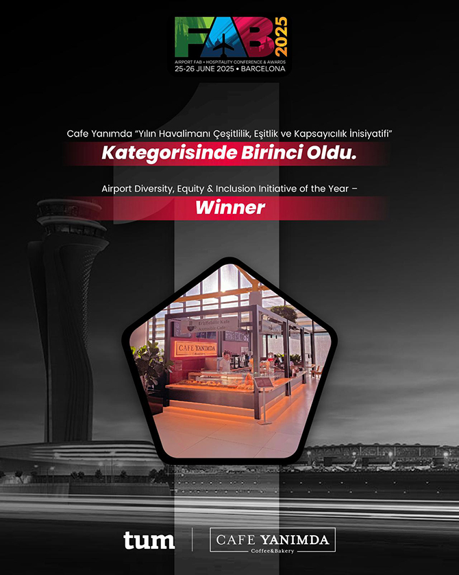Cesur ayrıca "İstanbul Havalimanı'nın her alanda yolcu deneyimini sahiplenen, kapsayıcılığı görünürlüğüen ve erişilebilirliği temel alan bir genel hakim. TUM ve TRU olarak biz de bu vizyonun güçlü bir parçasıyız. FAB bölümünün özellikle Cafe Yanımda'yı 'sosyal dönüşüme ilham veren bir örnek' olarak tanımlaması, bizim için ayrı bir başarı.