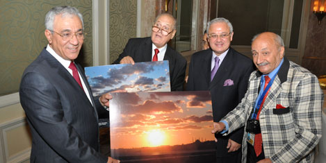 KAHİRE / MISIR - Türk turizminin usta fotoğrafçısı Halil Tuncer, Mısır’ın başkenti Kahire’de yapılan Dünya Turizm Yazarları ve Gazetecileri Federasyonu-FİJET’in genel kurulunda Mısır Turizm Bakanı Hisham Zaazou’ya Türkiye fotoğrafı armağan etti.