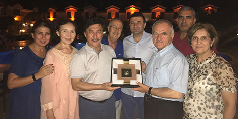 Al-Farabi Kazak Milli Üniversitesi’nin Rektörü, Prof.Dr.Galım Mutanov; DOKTOB Başkanı Yücel Okutur’a Altay Dağlarından çıkan Türk boylarını temsilen bir plaket verdi.