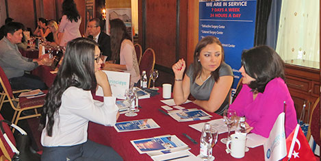 Medicana Sağlık Grubu Uluslararası İlişkiler Koordinatörü Levent Uyaniker, BDT Bölge Sorumlusu Anaz Jalilov, Romatem Özel Fizik Tedavi ve Rehabilitasyon Hastaneleri’nden Dr. Erdal Atalay, Pazarlama Direktörü Leyla İlhan Pamukçu, MedicalPark Hastaneler Grubu Müdürü Erol Arslan, Turmeda Türk Medical Ajansı Genel Müdürü Mustafa Tacar, Bölge Temsilcisi Sabit Seyduealiyev, Nobel Medikal Merkezi Kurucu Direktörü Dr.Turgay Sehil, Pam Thermal Genel Müdürü Taner Ulutaşdemir, Medline Adana Hastanesi Yurtdışı Hasta Birimi Yöneticisi Gamze Bağırsakçı, Kurumsal İletişim ve Pazarlama Yöneticisi Hatice Çelik, Kent Hastanesi CIS Bölge Direktörü Dina Kuspanova, Birinci Eye Hastanesi İş Geliştirme Direktörü Çilem Kaya, Bosphorus Med Assit’den Ebru Gül, Ethica Yurtdışı Pazarlama Sorumlusu Djuletta Mahamatjan, Estethica Bölge Müdürü Aysylu İbragimova, Acibadem Grubu’ndan Sabina Mustafaoğlu, Acıbadem Üniversitesi’nden Levent Baş, Medicabil Hastanesi Bursa’dan Uluslararası Pazarlama Sorumlusu Samet Bilgen, Güven Hastanesi’nden Dr. Tünzale Hüseynova, Lokman Hekim Uluslararası İlişkiler Yönetmeni Tuğba Arız, Afyonkarahisar Korel Thermal Resort Clinic&Spa’dan Genel Müdür Ümit Uysal, Genel Müdür Yardımcısı Taylan Turan katıldı.