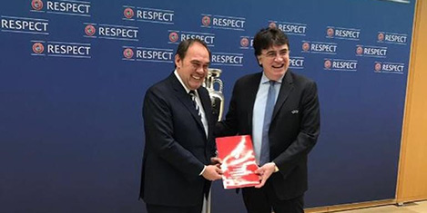NYON - Türkiye Futbol Federasyonu (TFF), TFF Başkanı Yıldırım Demirören, EURO 2024 ev sahipliği için resmi başvuru dosyasını UEFA Genel Sekreteri Theodore Theodoridis'e, İsviçre'nin Nyon kentindeki UEFA Genel Merkezi'nde teslim etti.