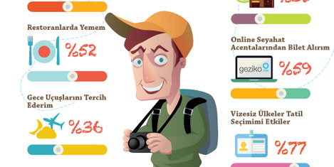 Katılımcıların %59’u uçak bileti araştırmalarını www.geziko.com gibi online seyahat şirketlerinden yaptığını belirtiyor. Uçak bileti seçimlerinde nispeten daha uygun olan gece yolculukları tercih ediliyor.