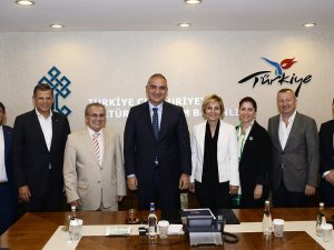 Türkiye Otelciler Birliği (TÜROB) yönetimi Kültür ve Turizm Bakanı Mehmet Ersoy’a ilk ziyaretini gerçekleştirdi. TÜROB Başkanı Timur Bayındır’ın yanı sıra Başkan Yardımcıları Müberra Eresin ve Armin Zerunyan, Genel Sekreter, Hediye Güral Gür, Yönetim Kurulu Üyeleri Taner Yallagöz ve Nuri Kalyoncu ile TÜROB Genel Müdürü İsmail Taşdemir’den oluşan TÜROB heyeti Ankara temasları kapsamında Bakan Yardımcıları Nadir Alpaslan ve Ömer Arısoy’u da ziyaret etti. TÜROB heyeti, Bakan Ersoy’u ziyaretinde bir de rapor sunarak, konaklama sektörünün kısa vadede beklentilerini dile getirdi. TÜROB Başkanı Timur Bayındır, ziyarette yaptığı konuşmada, şu anda turizm sektörü için en önemli beklentinin gelir artırıcı girişimlerin hızlandırılması olduğunu belirterek,“Özellikle gelir ve nitelikli misafir bakımından en önemli turizm segmentlerinden biri olan kongre turizmindeki girişimler artırılmalı” dedi.
