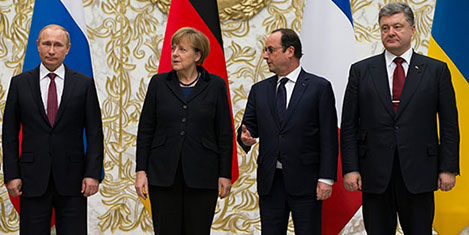 Rusya Devlet Başkanı Vladimir Putin, Almanya Şansölyesi Angela Merkel, Fransa Cumhurbaşkanı François Hollande ve Ukrayna Cumhurbaşkanı Petro Poroşenko’nun katılımıyla gerçekleştirilen Minsk’teki barış görüşmelerinden ateşkes kararı çıktı.