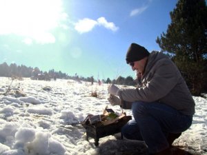 Vatandaşlar, kar üzerinde mangal keyfi yaşamak için yılbaşı tatilini de fırsat bilerek Uludağ'a geldiklerini ve gün boyu zirvede zaman geçireceklerini ifade ettiler. - BURSA