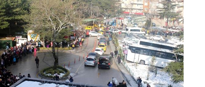 Okulların yarıyıl tatiline girmesini fırsat bilen tatilciler ve Bursa Büyükşehir Belediyesi'nin Kış Şenliği etkinliğine katılacak olanlar, Uludağ'a akın etti. Ülkenin birçok illerinden ailece ya da arkadaş gruplarıyla gelen tatilciler, teleferiğe binmek için uzun kuyruk oluşturdu. 1 kilometreyi bulan kuyruk, Teferrüç Mahallesi'nde sokak aralarına kadar uzadı.