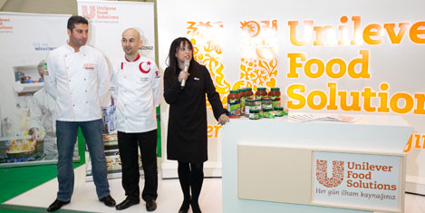 Unilever Food Solutions Pazarlama Direktörü Emel Akman, fuar alanında yaptığı açıklamada “Ev dışı gıda pazarının lideri Unilever Food Solutions olarak, 2011 yılıyla birlikte önemli bir değişime yelken açmış bulunuyoruz. "Her gün ilham kaynağınız" vizyonuyla bir yandan kurumsal kimliğimizi yenilerken, müşterilerimize her zamankinden daha yakın olmayı hedefliyoruz” dedi. Bu kapsamda yaptıkları araştırmada Türkiye"de Ev Dışında Yemek Yiyen Tüketicilerin %90"ının yemeğin içeriği konusunda bilgi sahibi olmak isterken sadece %13"ünün bu dataya erişebildiğine dikkat çeken Akman, sektörde sadece ürünler ile değil yeni servis markaları ile de sektörün gelişmesi için çalışacaklarını belirtti. Bu amaçla yeni lanse edilen "" Siz ve Mutfağınız"", ""Siz ve Menünüz"" ve ""Siz ve Misafirleriniz"" servis markalarını tanıttı.