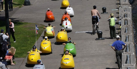 PORTLAND - Yurt dışında birçok ülkede şehir içinde kullanılan velomobiller, Amerika'yı baştan başa dolaşacak. Kuzey Portland'dan yola çıkan yaklaşık 50 velomobil, 26 Ağustos'ta yolculuklarını Washington DC'de tamamlamayı planlıyor.