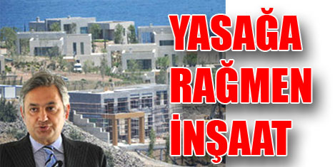 BODRUM / MUĞLA- Bodrum’da turizmi olumsuz etkilememesi için konulan inşaat yasağına rağmen Cennet Koyu’nda bir villanın önünde çalışan dev iş makineleri vatandaşı isyan ettirdi. Villa inşaatının Doğan Holding Yönetim Kurulu Üyesi ve Doğan Yayın Holding Başkanvekili Mehmet Ali Yalçındağ’a ait olduğu ortaya çıktı.