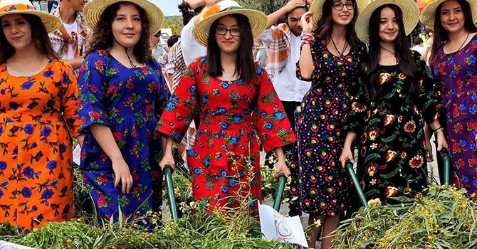 Manastırın çevresinde Yunanlı bayanlar el sanatlarını sergiliyorlar.
