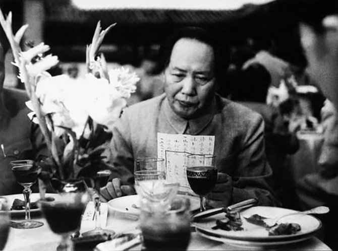 Mao’nun bir davetinin menüsü: Mantarlı kırlangıç yuvası konsomesi, bir zamanlar en varlıklıların ve sarayın yemeği sayılan kahverengi sosta köpekbalığı yüzgeci, ıslak hamura sarılı kızarmış üç renkli sebze roll’leri (börekleri), acılı kızarmış tavuk, bir Fransız yemeği olan sebzeli vejetaryen macedoine, Pekin ördeği, kestane püresi, pasta, kek, kurabiyeler ve meyve. Mao imzalı ve 1956 tarihli bu menü 2023’te açık arttırmada 275 bin dolara satıldı.